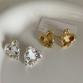 Cao cấp cổ điển Ins phong cách Bông tai đơn giản gió lạnh nhăn tình yêu với hợp kim Inlay bán buôn sẵn có